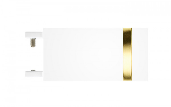 Końcówki karnisza Hilton Białe są z metalu kolorystycznie dopasowanego do białego profilu apartamentowego. Posiadają one złoty element dekoracyjny w formie paska. Końcówka Hilton przedłuża karnisz o 7 cm .
